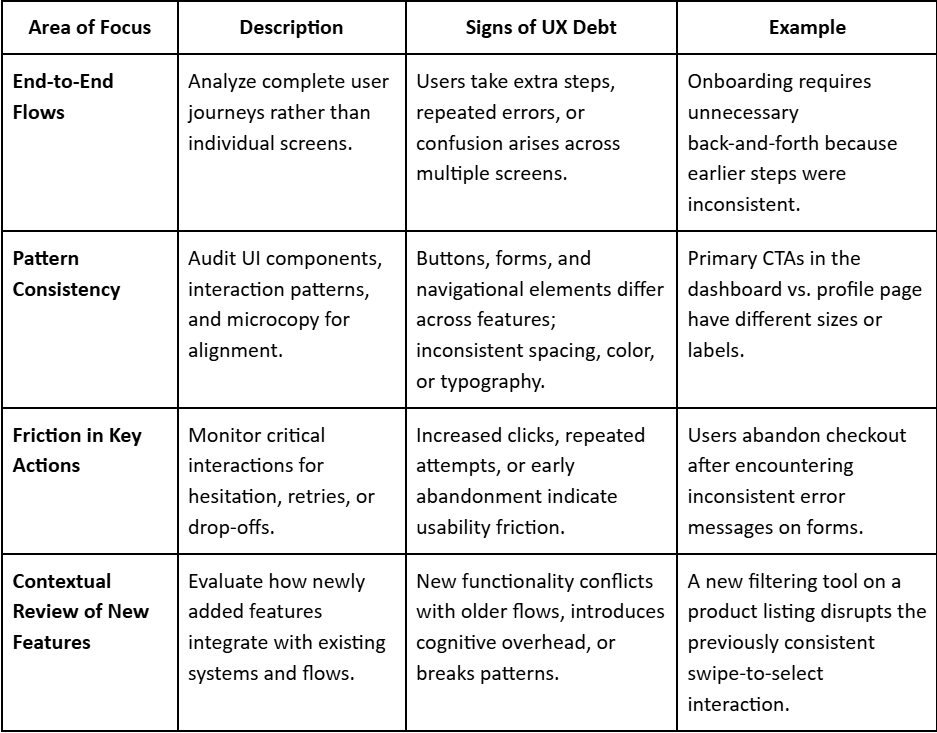 UX debt becomes visible only when teams observe real user behavior and test flows regularly.