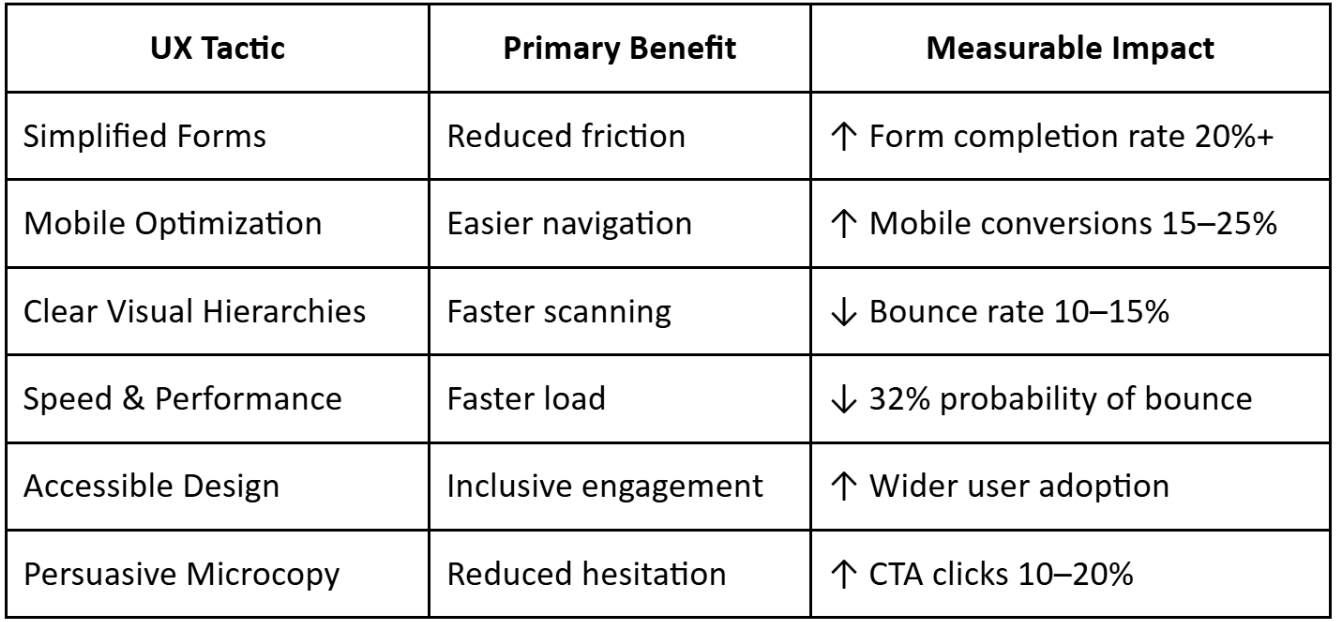 Table: Key UX Tactics vs. Business Impact